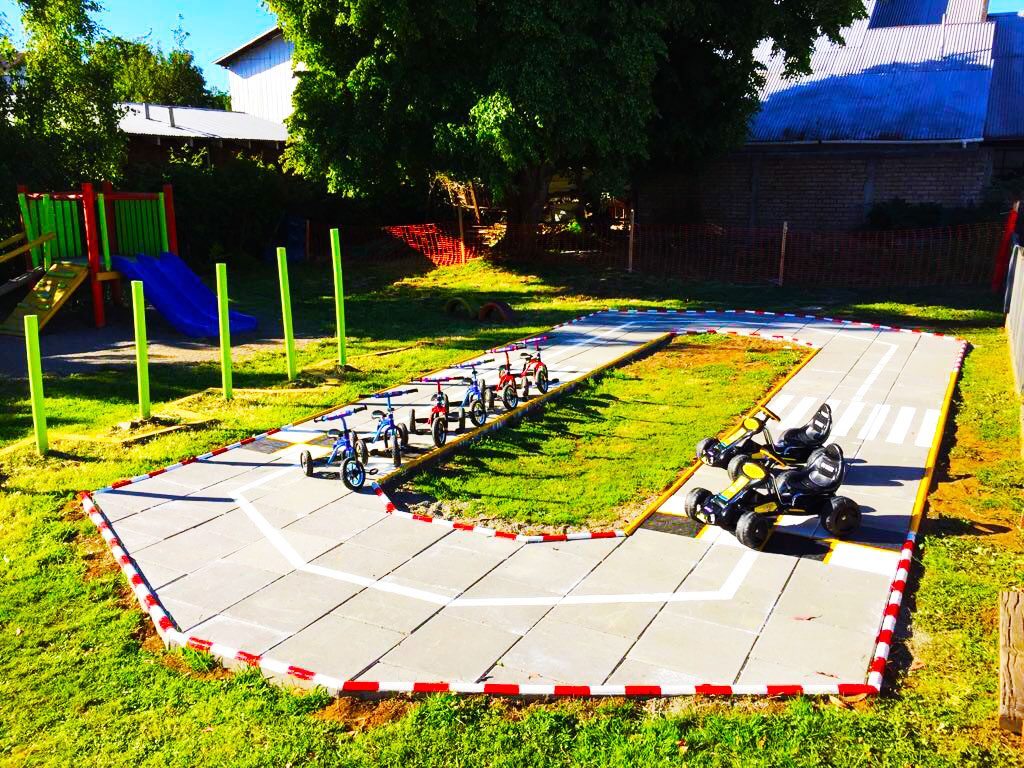 Inauguración de pista de carreras de triciclos en nuestro patio !